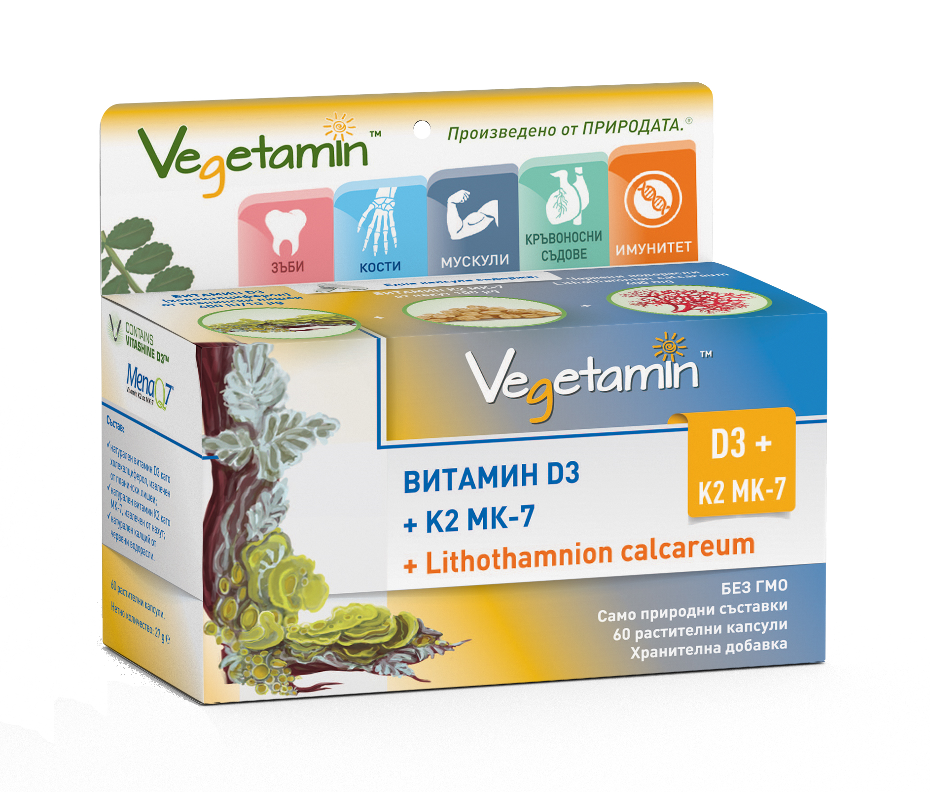 VEGETAMIN™ Витамини D3 + K2 МК-7 + Lithothamnion calcareum