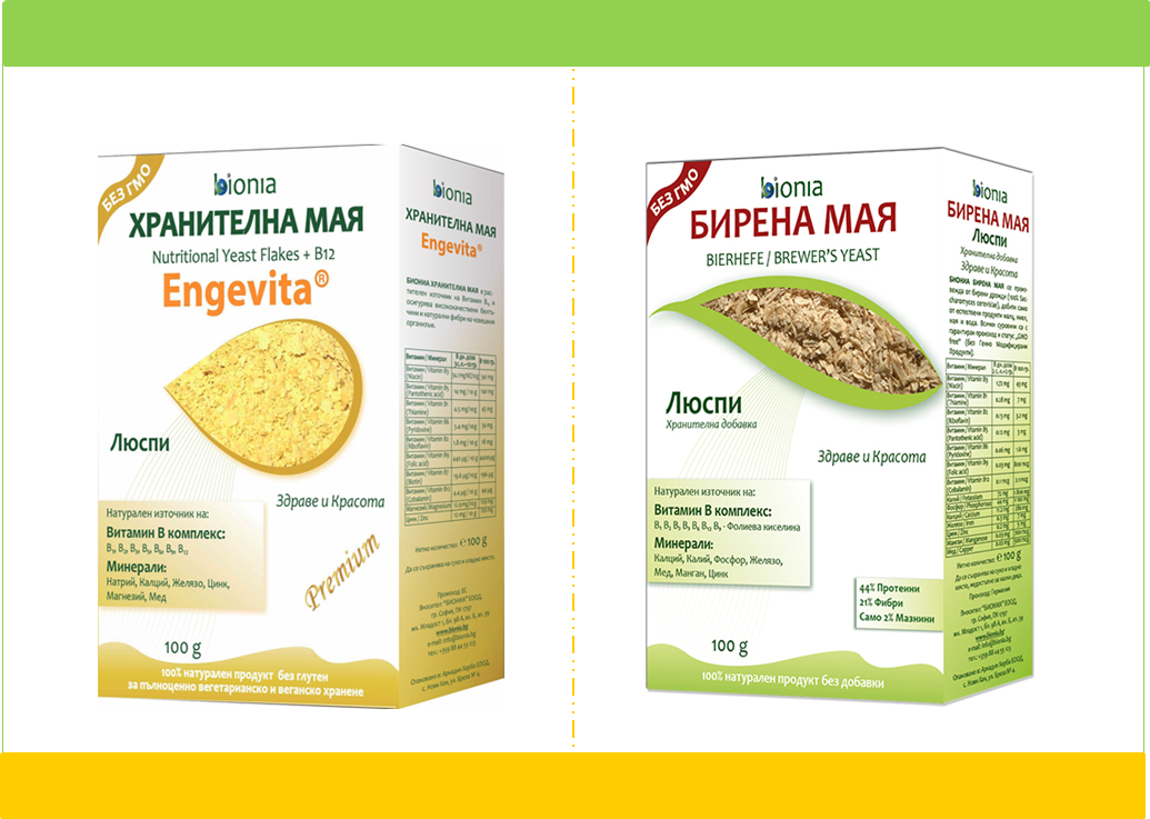 БИОНИА БИРЕНА МАЯ се произвежда от хмел и малц. Тези суровини са определящи и за характерния бирен вкус. Бирената мая е с гарантиран статус „БЕЗ ГМО“.