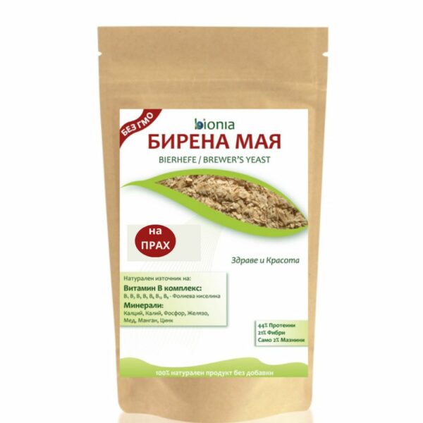Биониа Бирена мая е натурален източник на витамин В комплекс, включително фолиева киселина в естествената им комбинация от минерали. Тя оказва благоприятен ефект за поддържане състоянието на кожата, косата и ноктите, тя е помощно средство при множество ежедневни проблеми, като диария и запек, има положително въздействие при стомашно-чревни заболявания, хемороиди, раздразнен стомах и други, като същевременно повишава имунитета и спомага за доброто функциониране на нервната система. Подходяща е както за вегетарианци и спортисти, поради богатото си съдържание на витамини и белтъчини (35%), така и за хора спазващи диета заради високото съдържание на фибри (30%) и ниско съдържание на захари (1%).