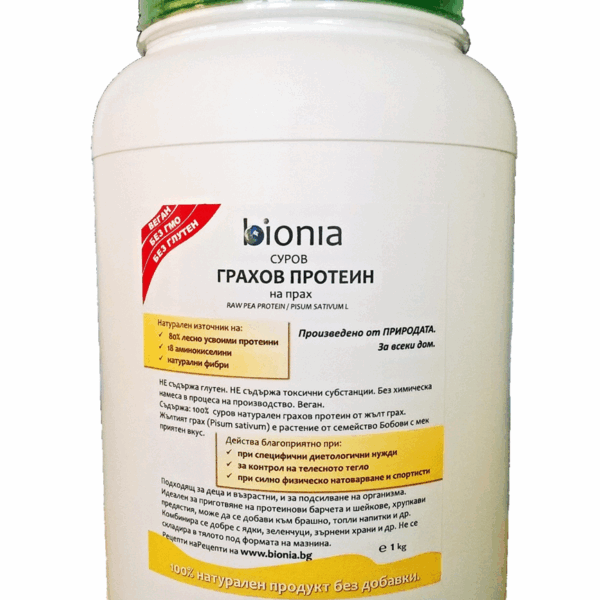 Съставки: 100% суров натурален грахов протеин от жълт грах. ℮ 1 kg