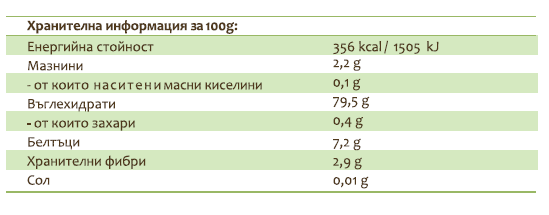 Указания за употреба и съхранение: Идеално за приготвяне на печива, питки, бисквитки, мъфини, кексове и др. Комбинира се добре с ядки, зеленчуци, бобови храни и др. Брашното от кафяв ориз може да замести до 30% от пшеничното брашно в разнообразни рецепти. Предимството му е, че е без глутен. Да се съхранява на сухо и хладно място, при стайна температура.