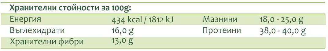 Указания за употреба и съхранение: Подходящ за деца и възрастни, и за подсилване на организма. Идеален за приготвяне на печива, гофрети, бисквитки, както и да се добавя в супи и сосове. Разтваря се във вода. Може да послужи като натурален емулгатор и заместител на месо. Комбинира се добре с ядки, зеленчуци, бобови храни и др. Да се съхранява на сухо и хладно място, при стайна температура.