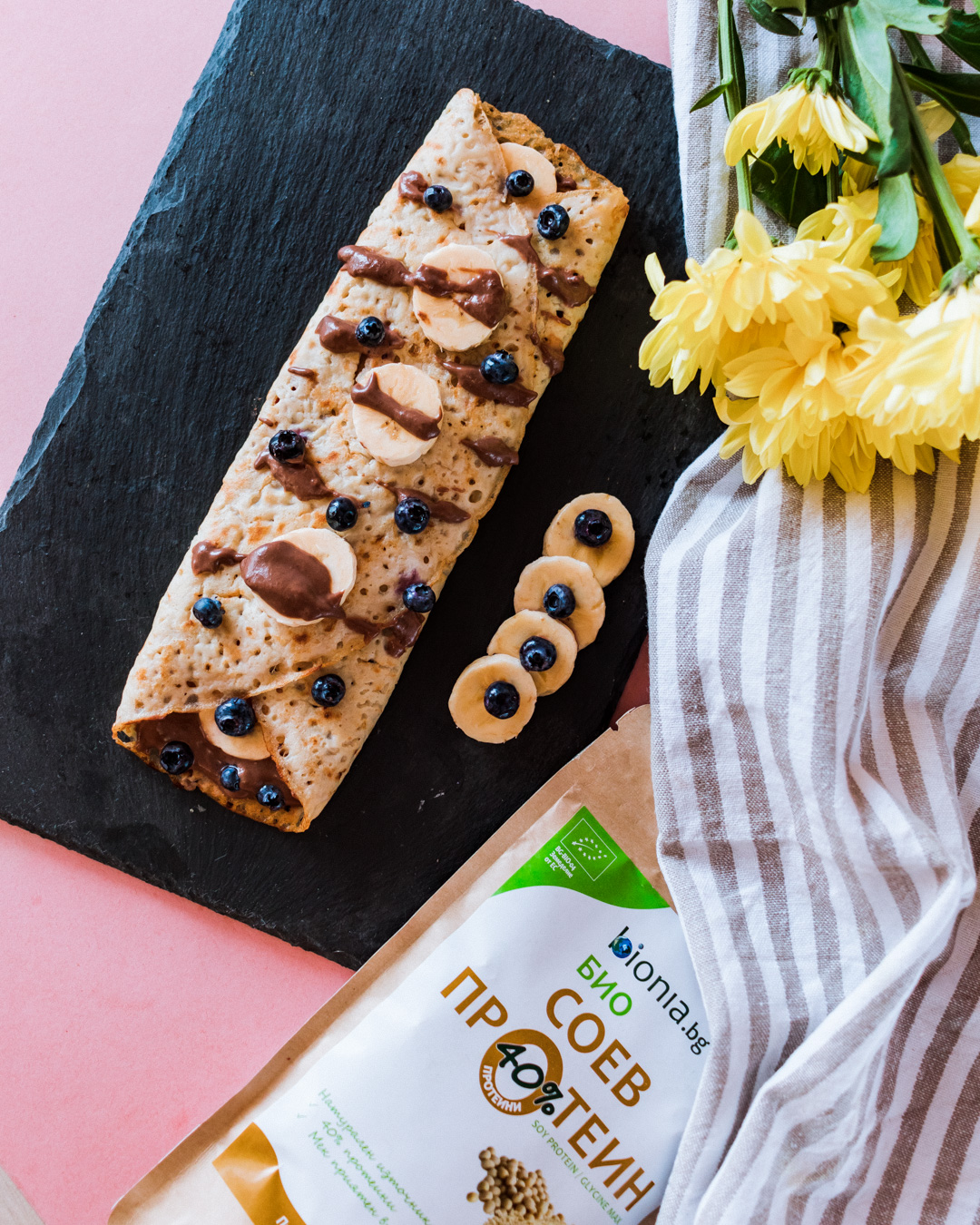 Необходими продукти: 1/3 ч.ч. соев протеин на прах, 2 ч.л. сурово какао на прах, щипка Бурбонска ванилия, 3-4 белени пресни фурми без костилка, 2-3 ч.л. соево мляко.