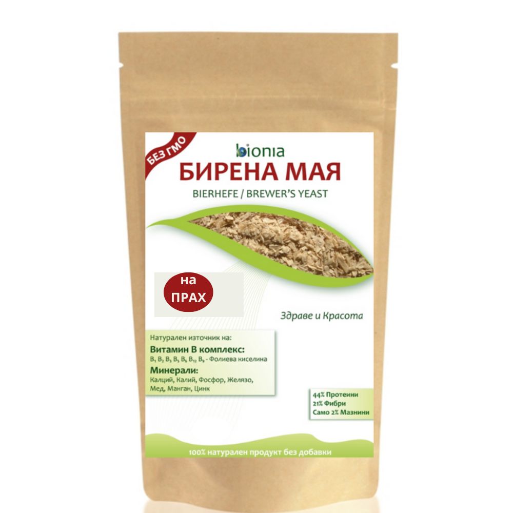 Биониа Бирена мая има естествен органичен произход и снабдява тялото с допълнителни количества белтъчини, фибри и енергия. Това е особено ценно,както за вегани и вегетарианци, които се стремят към изцяло органично хранене, така и за спортуващи: