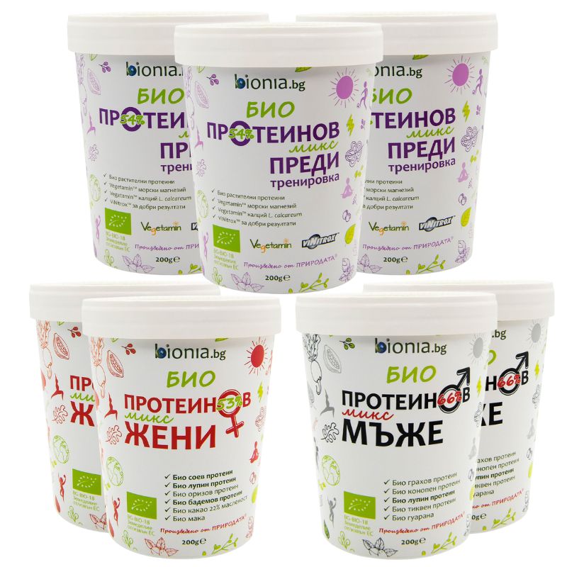2 опаковки – Bionia Био ПРОТЕИНОВ микс МЪЖЕ 66% протеин