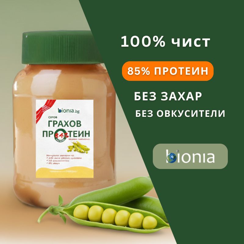 2 kg (2х1 kg опаковки) – Bionia™ суров грахов ПРОТЕИН 84% протеин