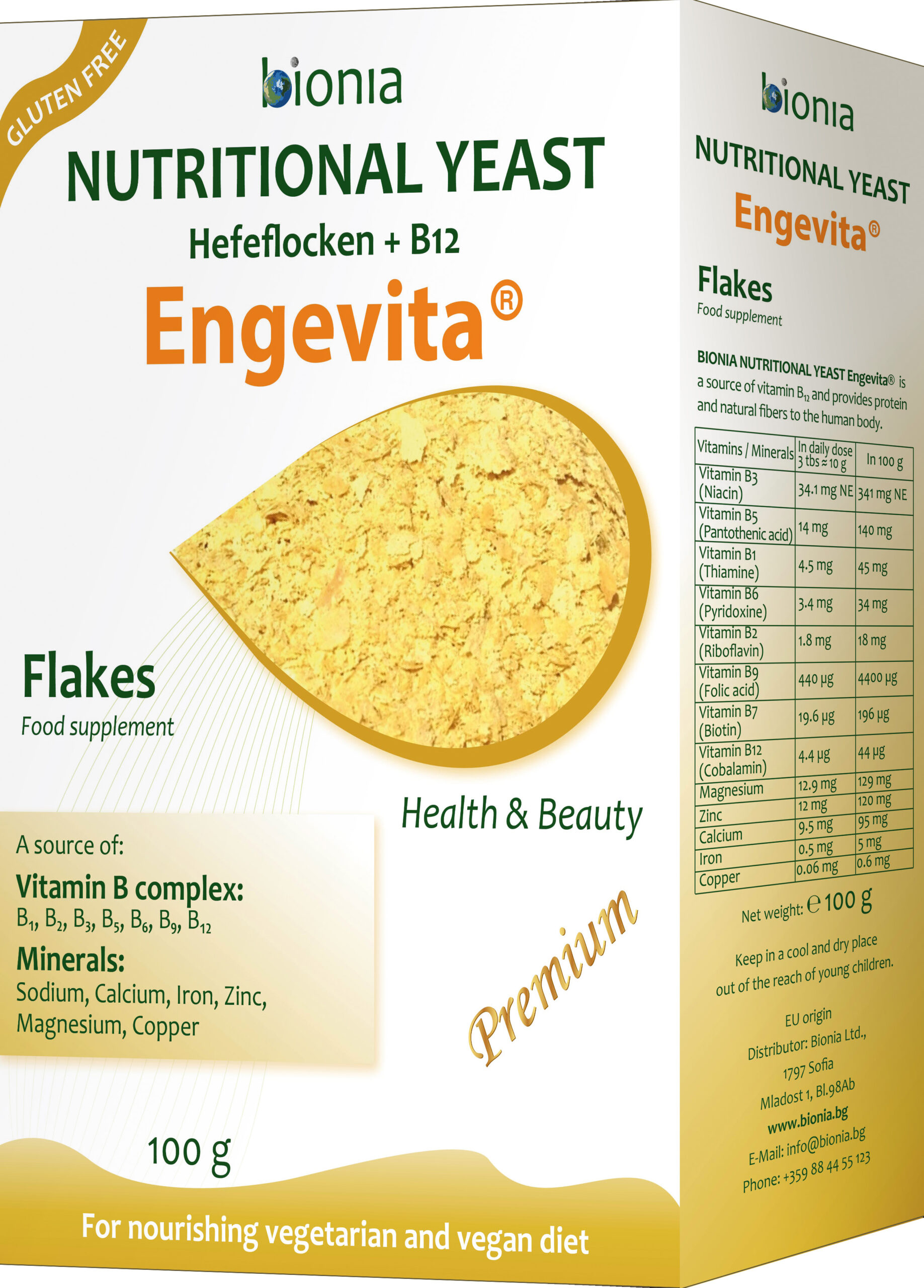 BIONIA – Хранителна мая е инактивирана мая на световната марка Engevita® – гарант за отлично качество и високи стандарти на производство в цял свят. Тя е силен източник на витамините от група В и най-вече на витамин В12.