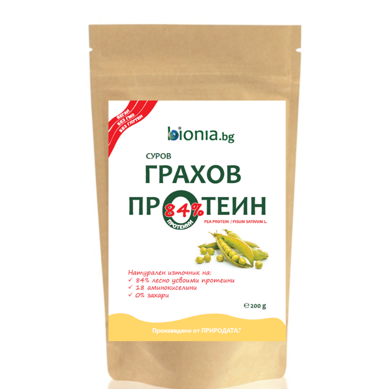 Съставки: 100% суров натурален грахов протеин от жълт грах. ℮ 200 g
