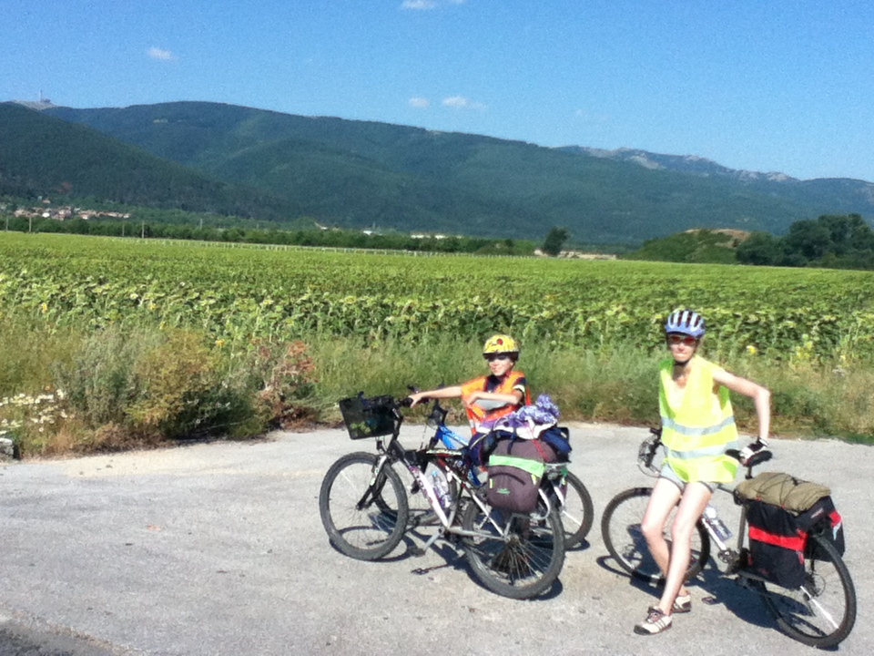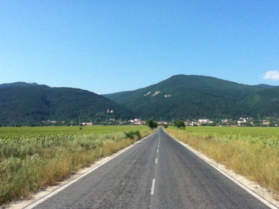 И така около 11 ч. оставихме Калофер зад нас. Подбалканският път е с много натоварен трафик от камиони и автомобили и преценихме, че е опасно място за колоездачи. Решихме да продължим по селските пътища южно от Подбалканския път. Селата в този район са предимно ромски и доста бедни. Малко се поизгубихме по полските пътища и след като пресякохме боси с колела в ръце (обратно на стандартния начин на придвижване) няколко ръкава на р.Тунджа успяхме да стигнем до цивилизация. Денят беше напреднал и решихме да разгледаме Долината на тракийските царе, след което да приспим в Казанлък.